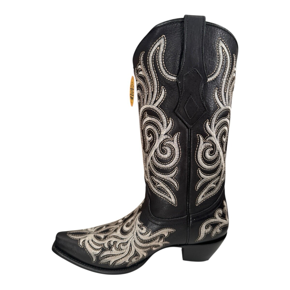 The Corral Ladies Black Pattern Embroidered Snip Toe Boots Z2599 in Women's Size 10 are stylish and comfortable western boots perfect for casual occasions. Made with high-quality leather, these boots feature a knee-high shaft with a unique snip toe design.