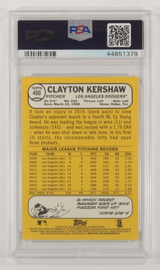 2017 Topps Heritage Klayton Kershaw Color Swap PSA 10 Gem Mt #400