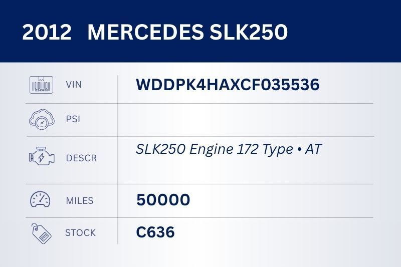 Engine 172 Type SLK250 Automatic Transmission 50K 2012-2015 MERCEDES SLK #44970