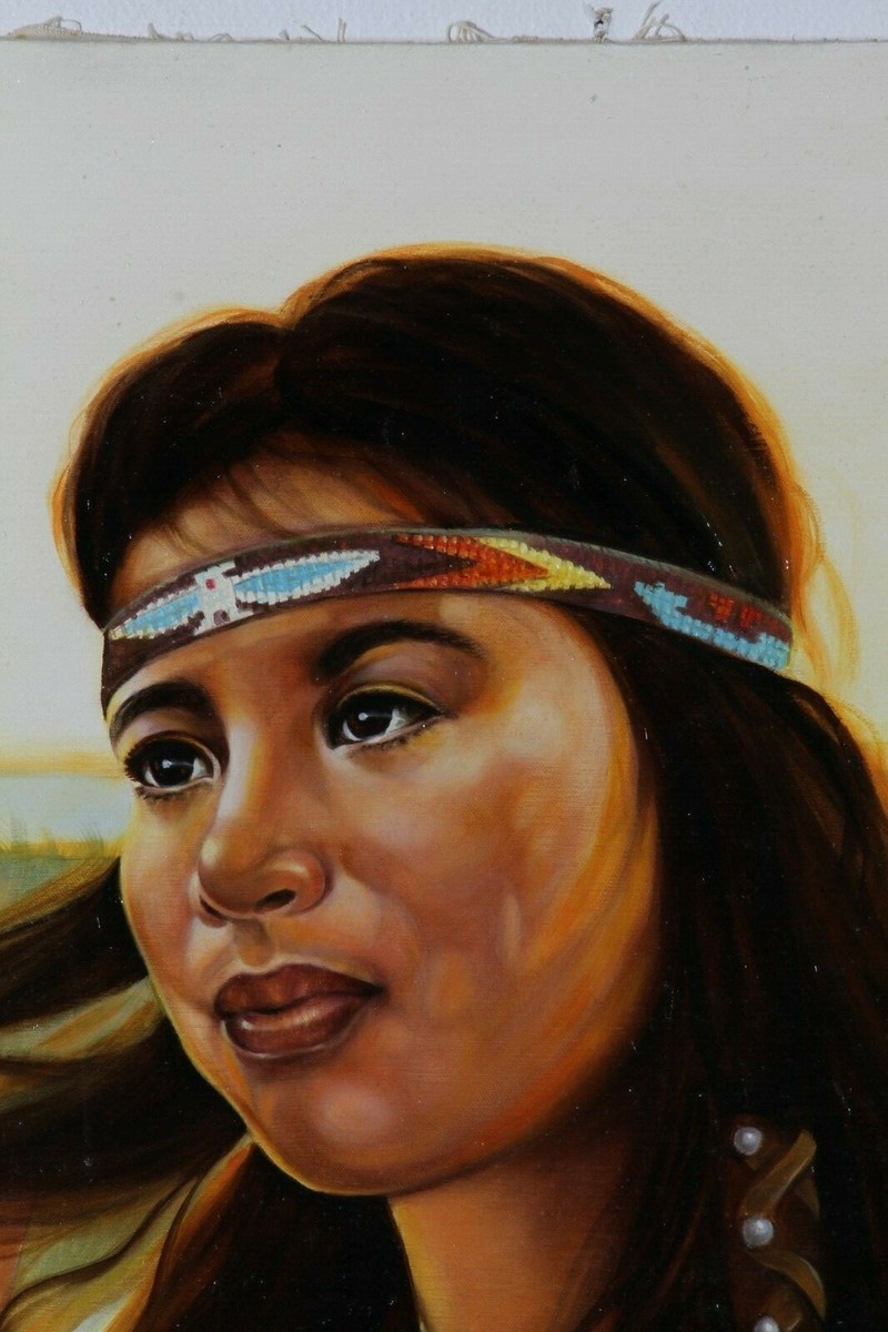 Dipinto ad olio senza titolo (donna nativa americana con fascia per capelli) di Anthony Sidoni