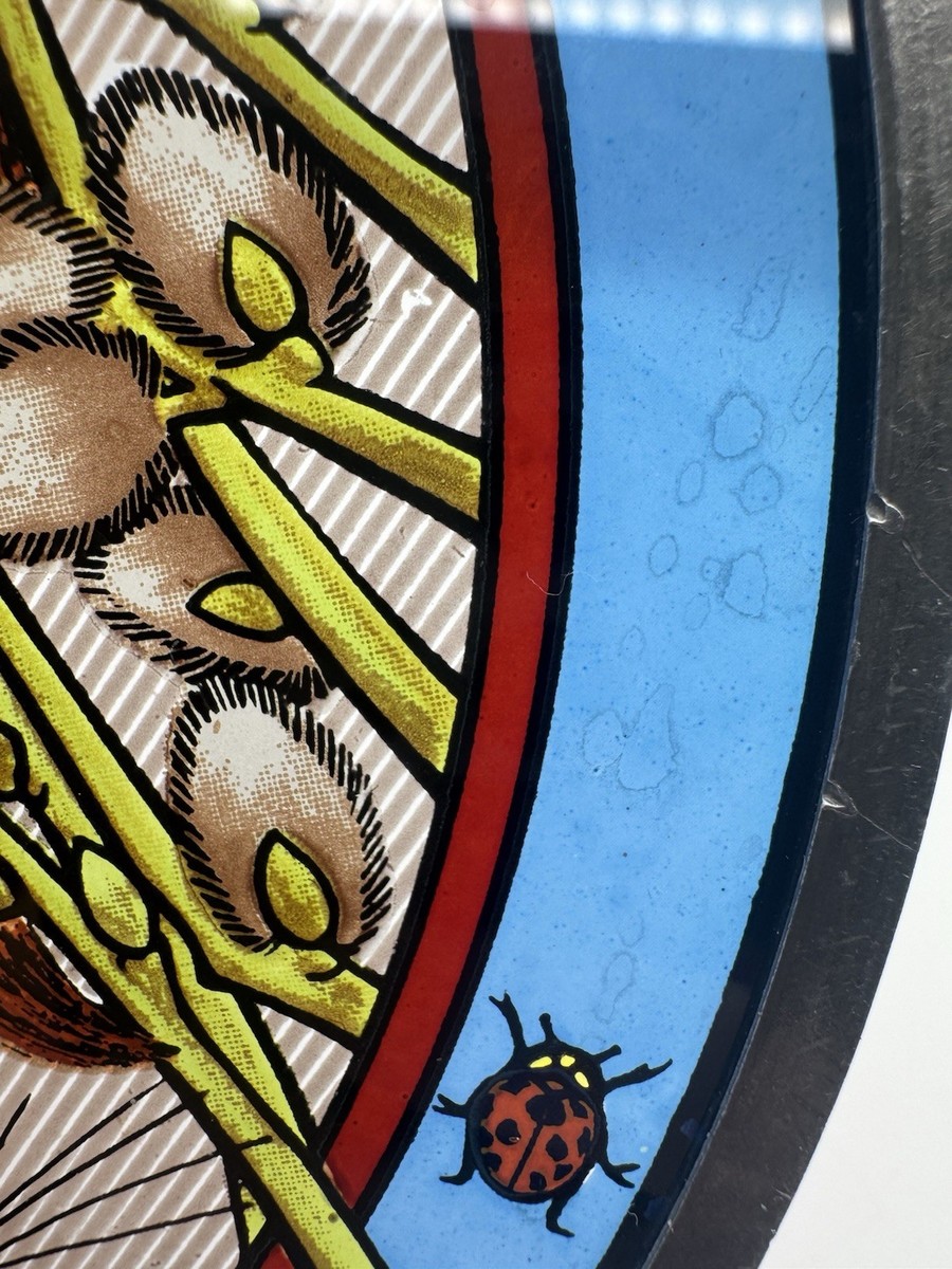 Vtg Glassmasters Cat Suncatcher Art Stain Glass 8.5" Orange Tabby Ladybug 1978