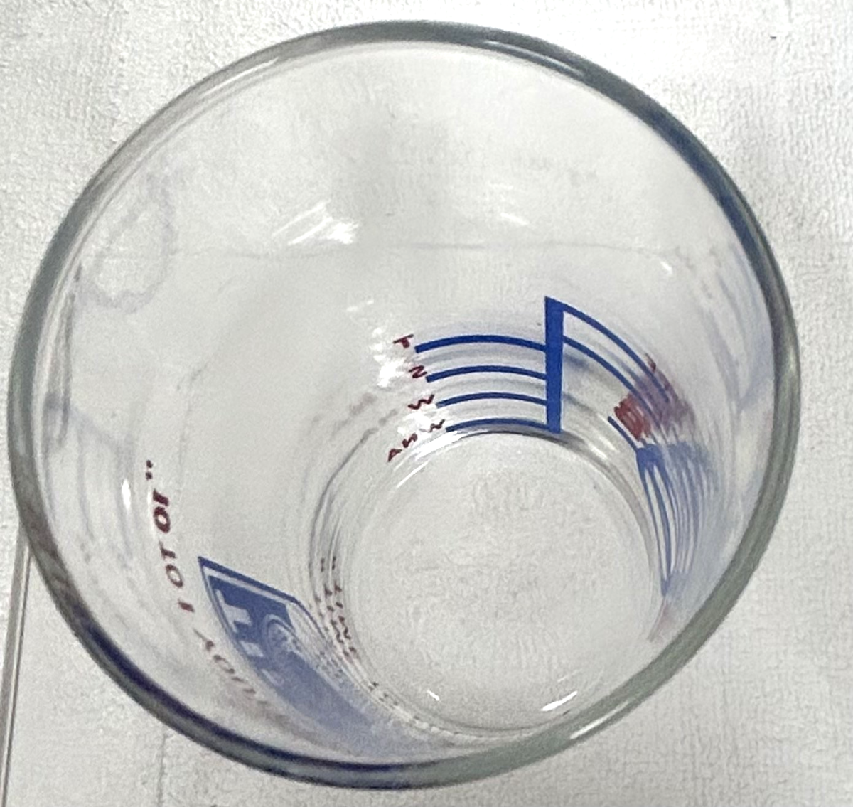 Clear red blue lettering |