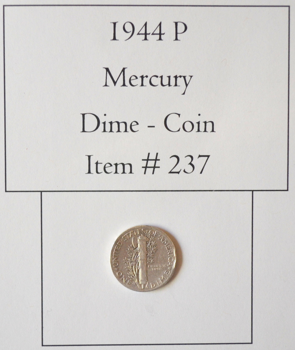 1944 P, Mercury Dime, # 237, Mercury Dime, dimes, vintage money, vintage coins