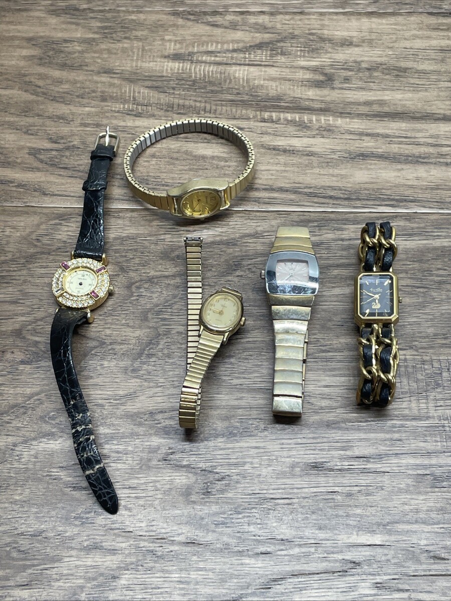 Lot of 5 Watches Parts Repair Gloria Vanderbilt Timex Oman Gruen Eternity KG