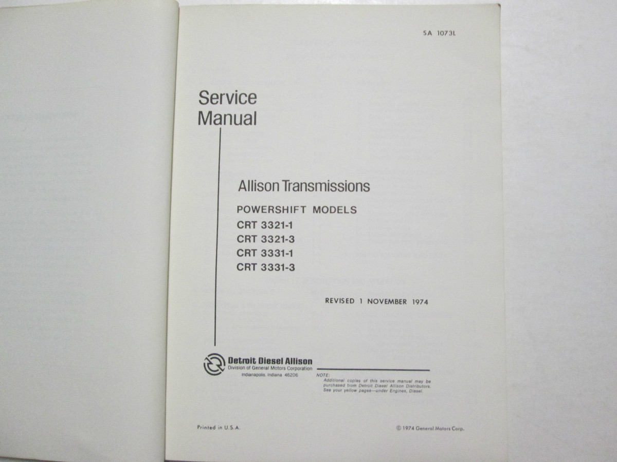 Manuale di servizio Detroit Diesel Allison Transmissions 3321, serie 3331 SA 1073L
