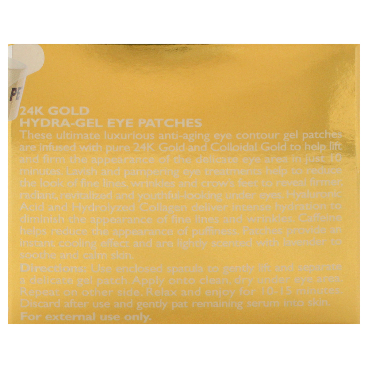 The ultimate in luxury, these anti-aging eye contour gel patches are infused with pure 24k gold and colloidal gold to help lift and firm the appearance of the delicate eye area in just 10 minutes. Known from the time of cleopatra to have powerful anti-aging benefits, 24k gold helps firm, lift, brighten and calm the appearance of skin while providing an opulent glow.