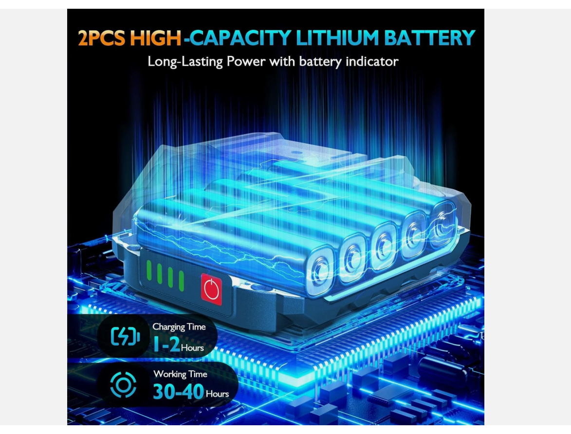 [2 High-Capacity Rechargeable Batteries] - Tietoc electric chainsaw is equipped with 221V 2000mAh rechargeable batteries with a charge level indicator, providing extended runtime for longer use. The overload and temperature protection systems help maximize battery life.