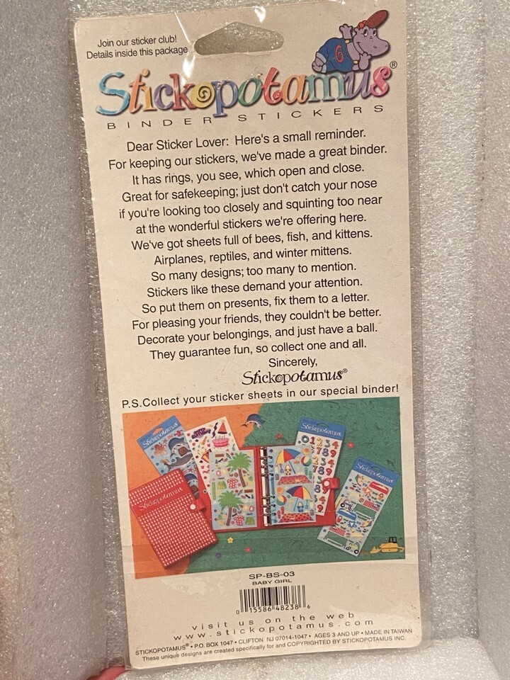 Stickopotamus Baby Girl Stickers w/Binder Holes *NEW/SEALED* DMB