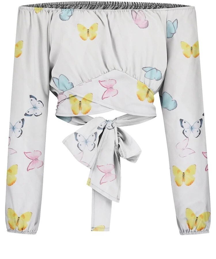 Women Sexy Off Shoulder Printing Blouses Chic and Elegant Lantern Long Sleeve Lace Up Bow Cropped Tops Casual Slim Shirts