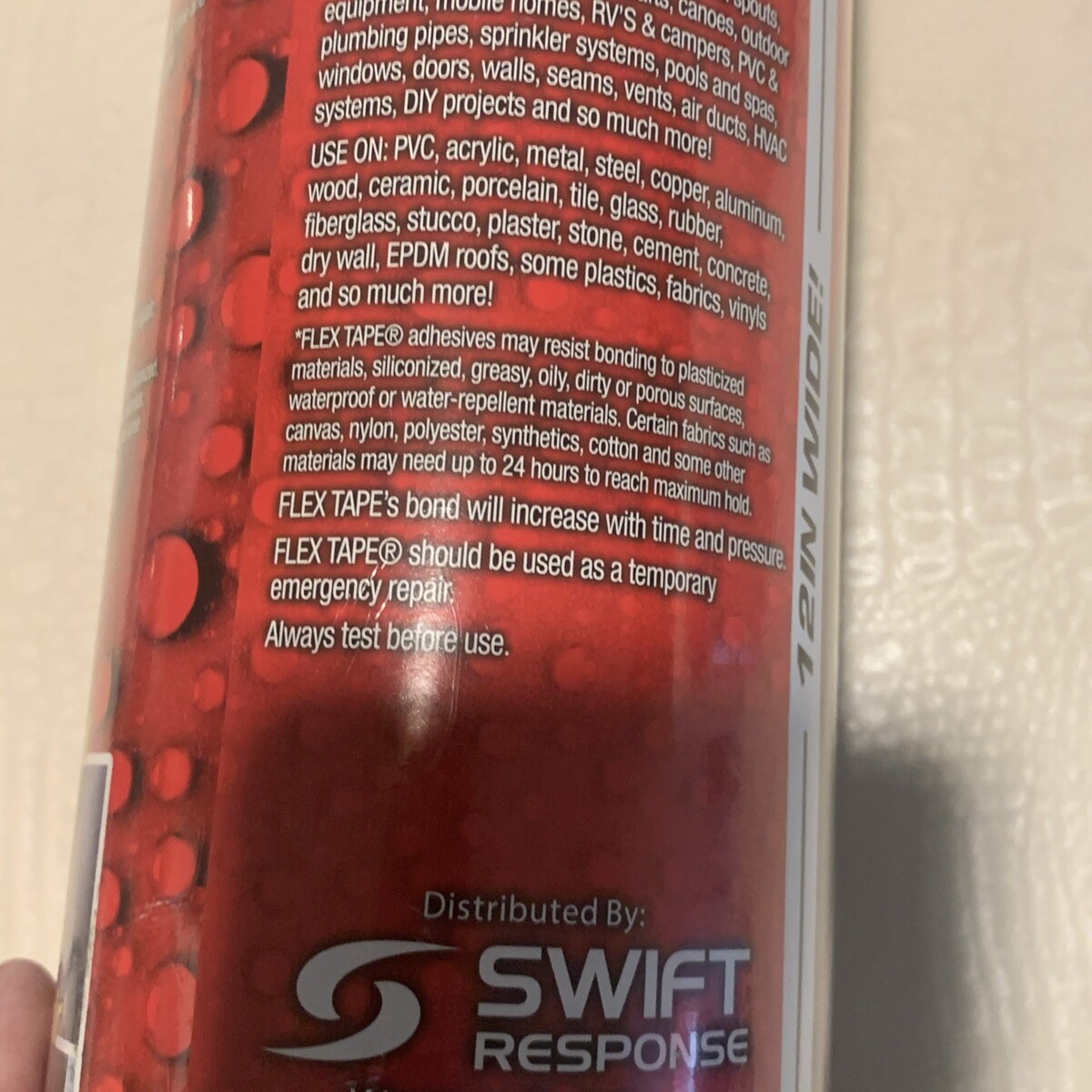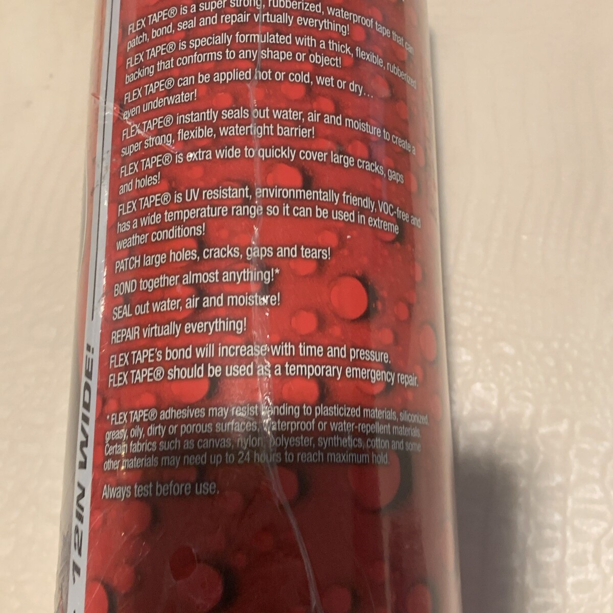 The Flex Seal Tape is a versatile and durable product made by the brand Flex Tape. This original thick flexible rubberized waterproof tape is designed to provide a strong and reliable seal against water and moisture. With dimensions of 12 inches in width and 10 feet in length, this tape is perfect for various industrial and commercial applications where a waterproof and flexible seal is necessary. Proudly made in the United States, this tape offers superior performance and quality for your sealing needs.