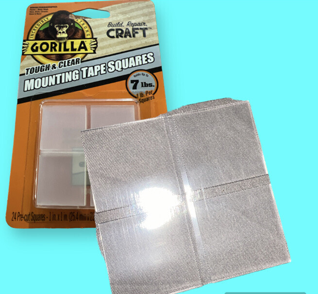 4 pieces - 1" Pre-Cut Squares Gorilla Tough & Clear Double Sided Mounting Tape