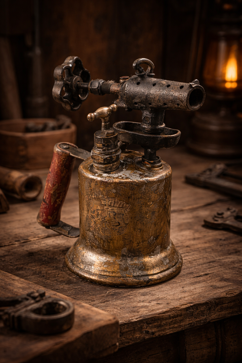 Originally used for heating, soldering, and metalwork, this blow lamp now stands as a bold statement piece?perfect for industrial, steampunk, or workshop-inspired decor.
