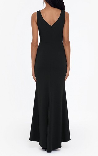 Betsy Adam 22921 Christine Scuba Ruffle Bow Gown SZ 8 Black