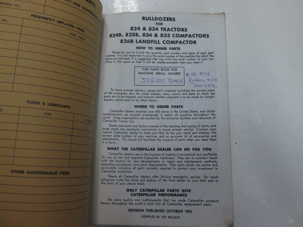Caterpillar 824 834 824B 825B 834 835 Traktoren Kompaktoren 826B Depactor Teile Handbuch gefarbt