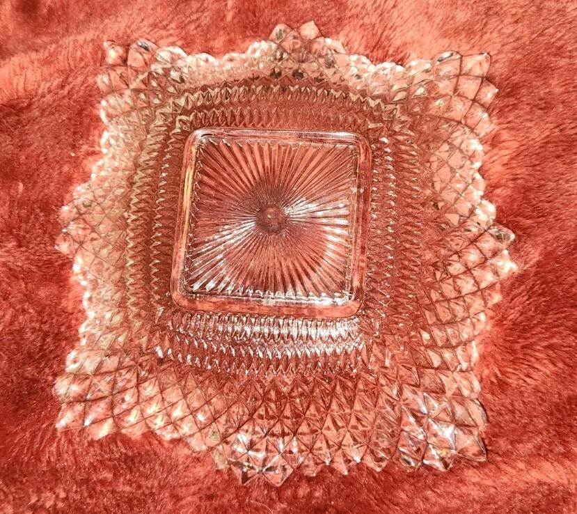 Vintage candy serving dish. Might be good for relish. 6.5x6.5 inches square. Maker is unknown.