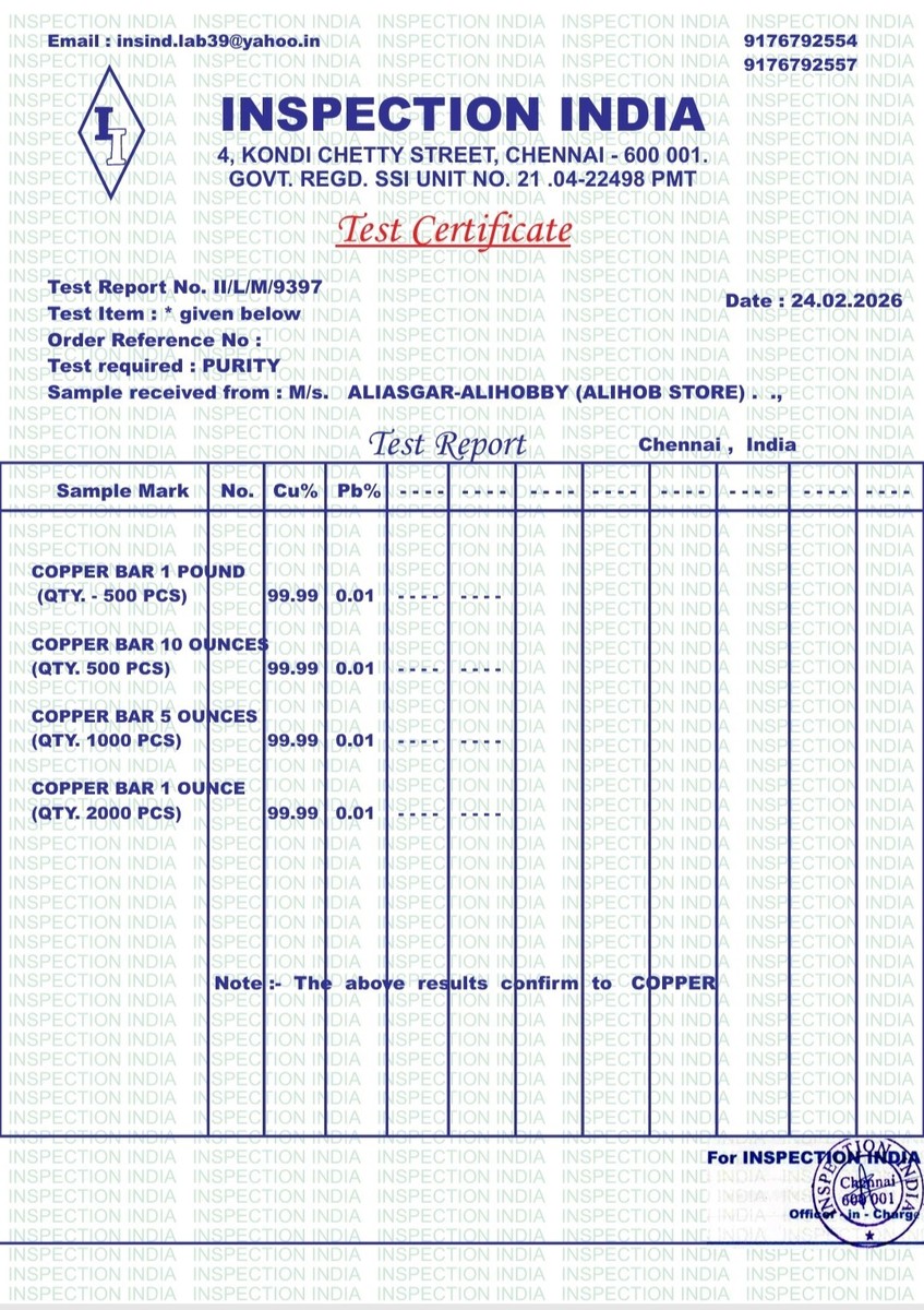 La barra es una inversion de cobre puro hecha para coleccionistas o inversores que buscan agregar metales preciosos a su cartera. Con acabado pulido. La superficie de cobre muestra marcas naturales y patina consistentes con el manejo y la edad.