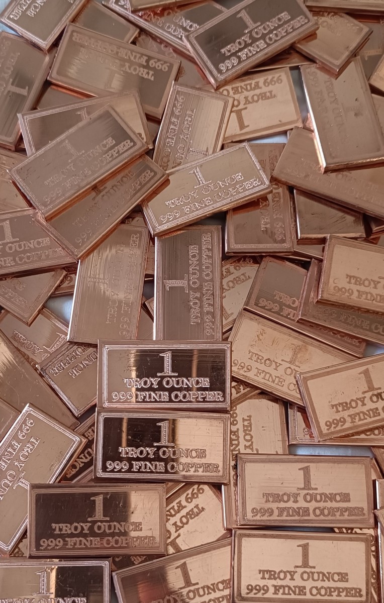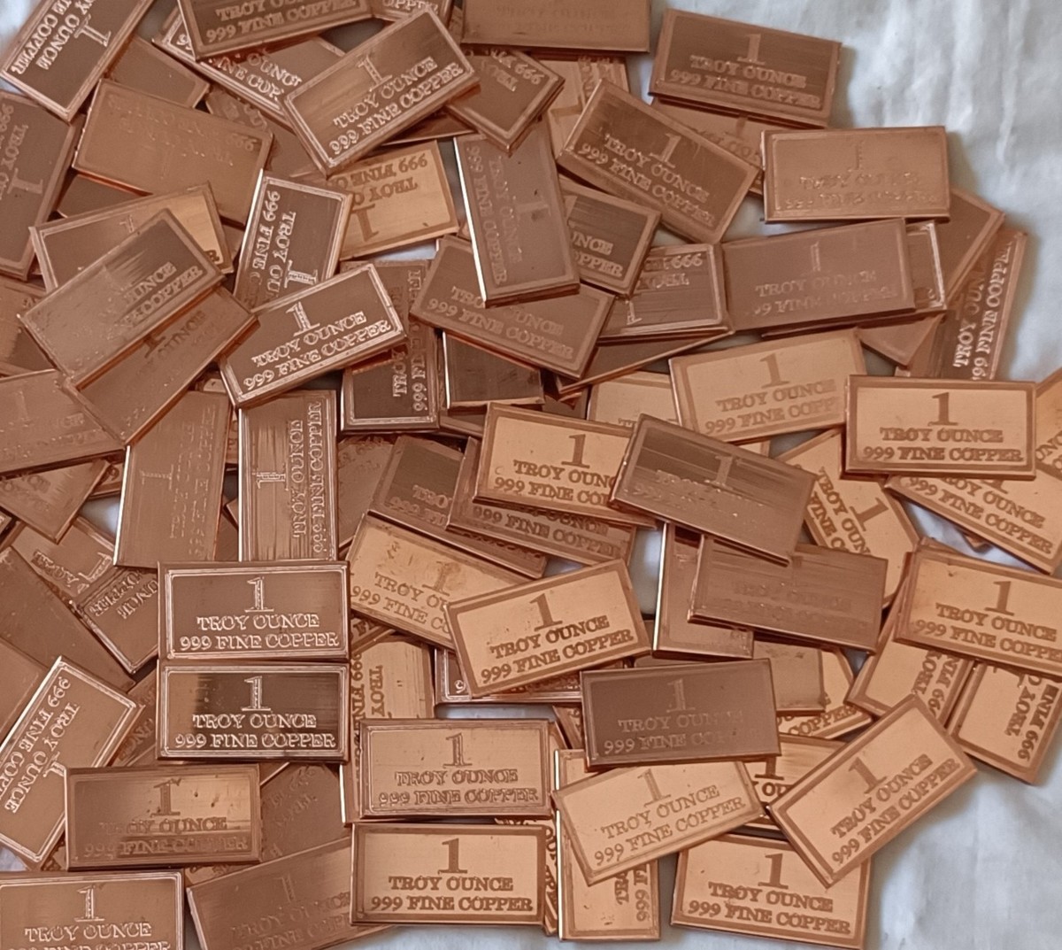 25 BARRAS DE LINGOTE DE COBRE FINO .999 DE 1 Oz