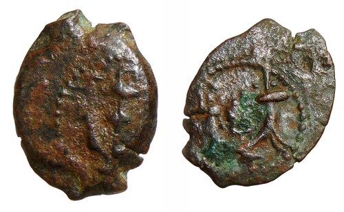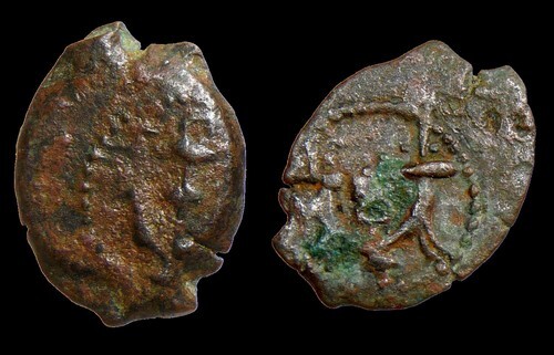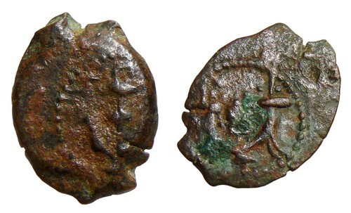 Obverse: H??? BA?I? (Of King Herod in Greek), anchor.