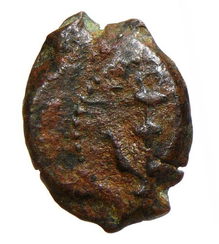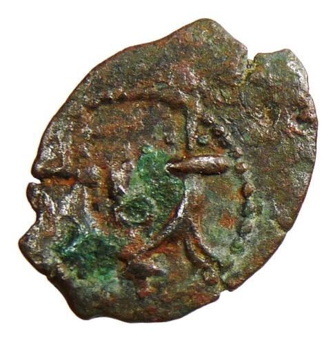 Bronze Prutah Coin, Jerusalem mint, 1.77g, 17mm at widest. This is a small coin~compare a U.S. dime which is 17.9mm.