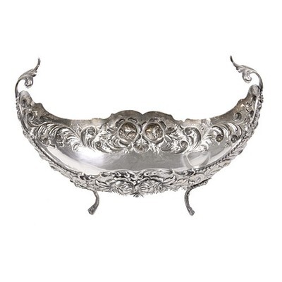 Bol Ovale Sur Pieds En Argent 900 Repousse, Centre De Table