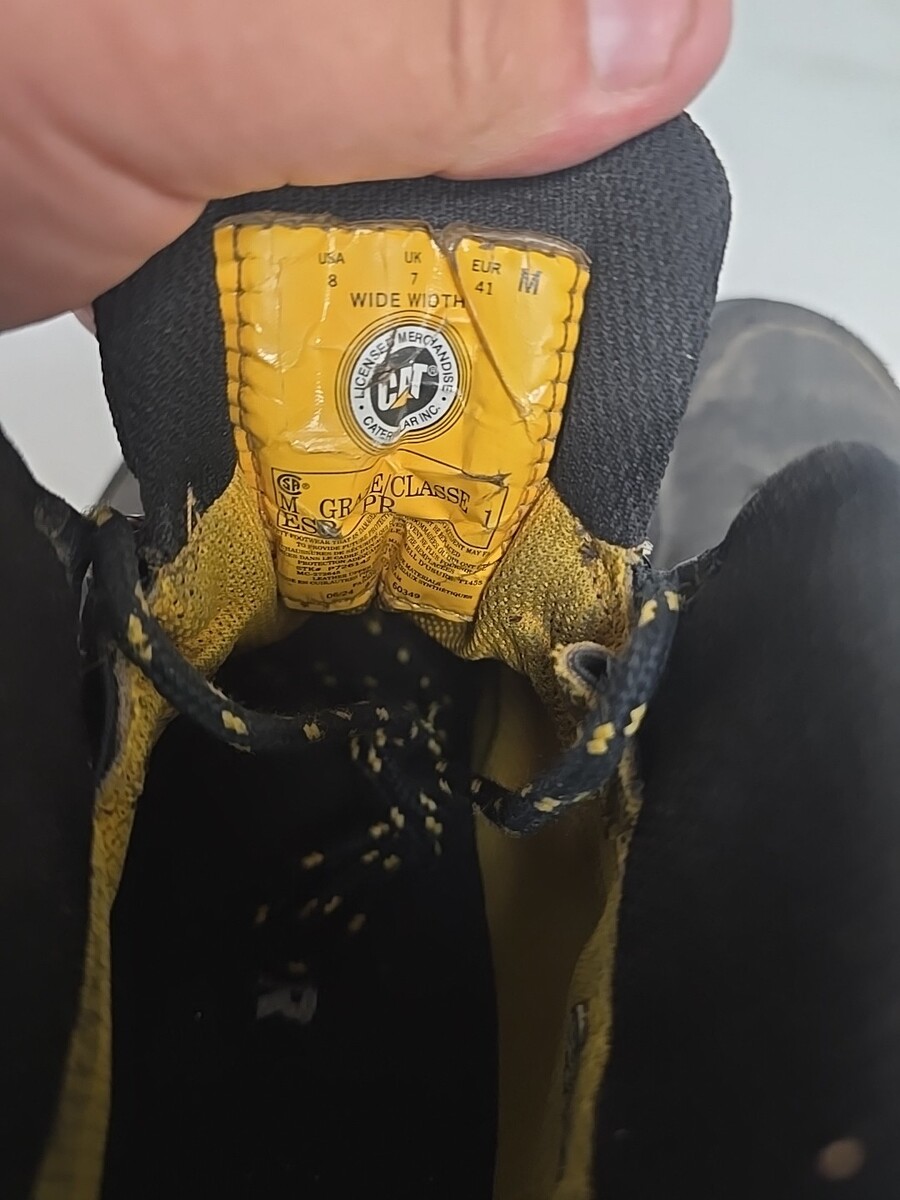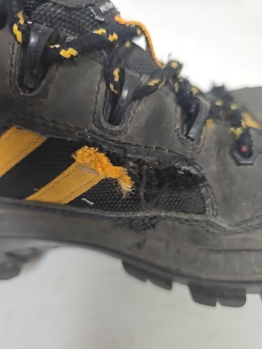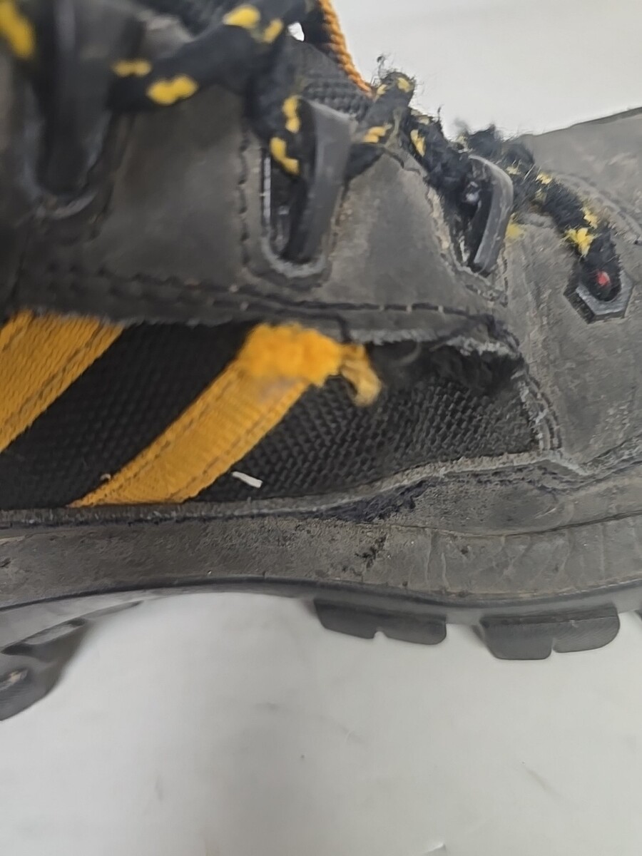 TEAR ON SEAM OF LEFT BOOT, THIS CAN BE REPAIRED OR WILL BLEND IN WITH NORMAL WEAR