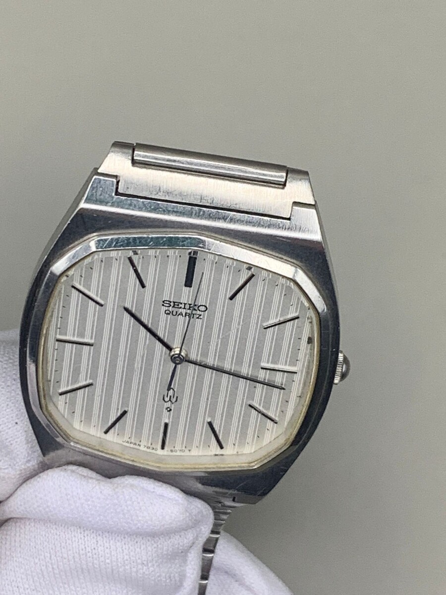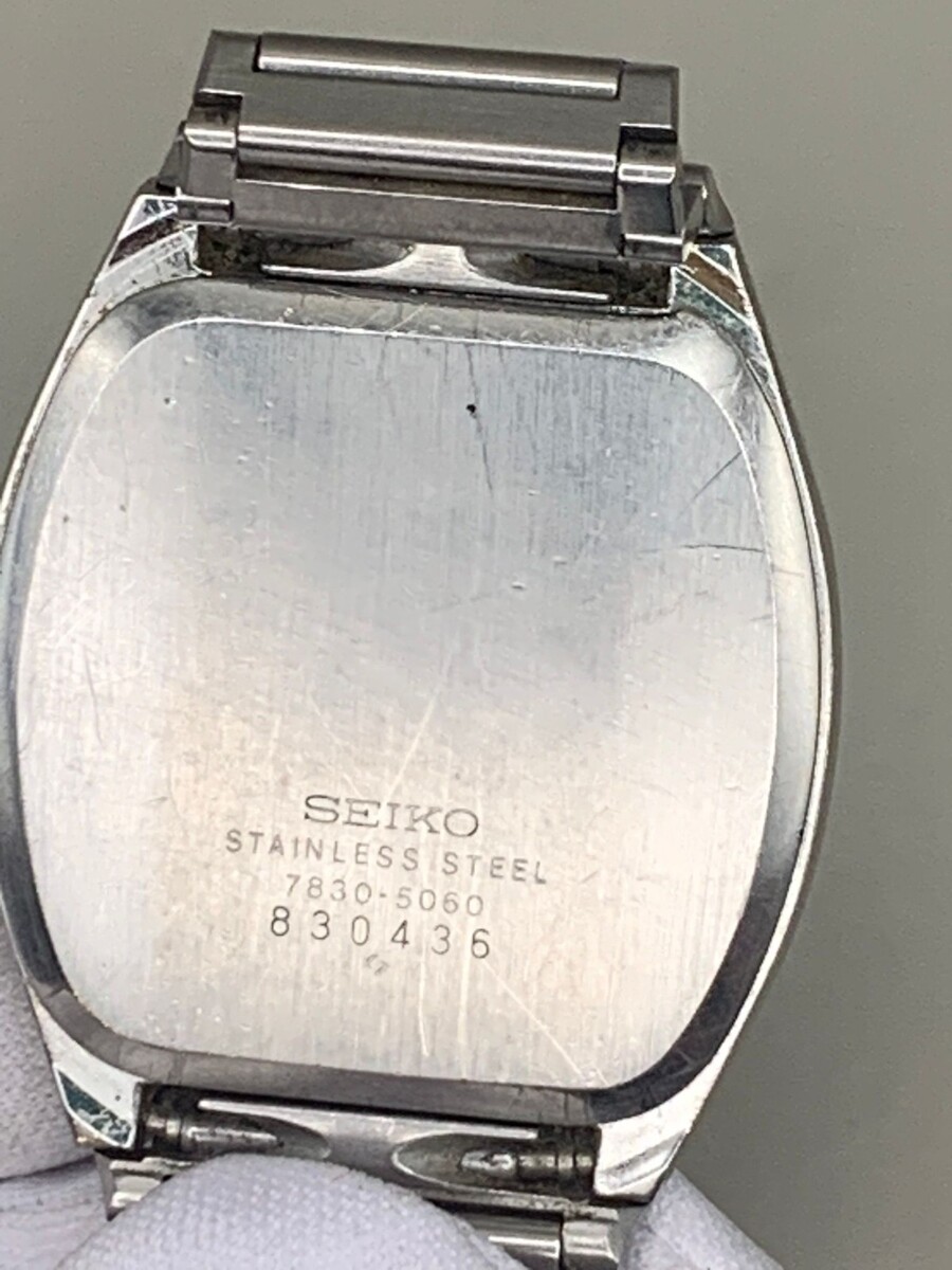 Vintage Seiko Quartz 7830-5060 TV Case Textured Dial Stainless Steel Japan 1980s