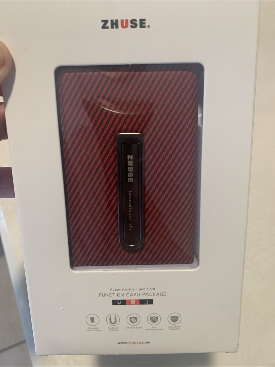 ZHUSE Automatic Pop-Up RFID Blocking Credit Card Holder Metal Wallet red