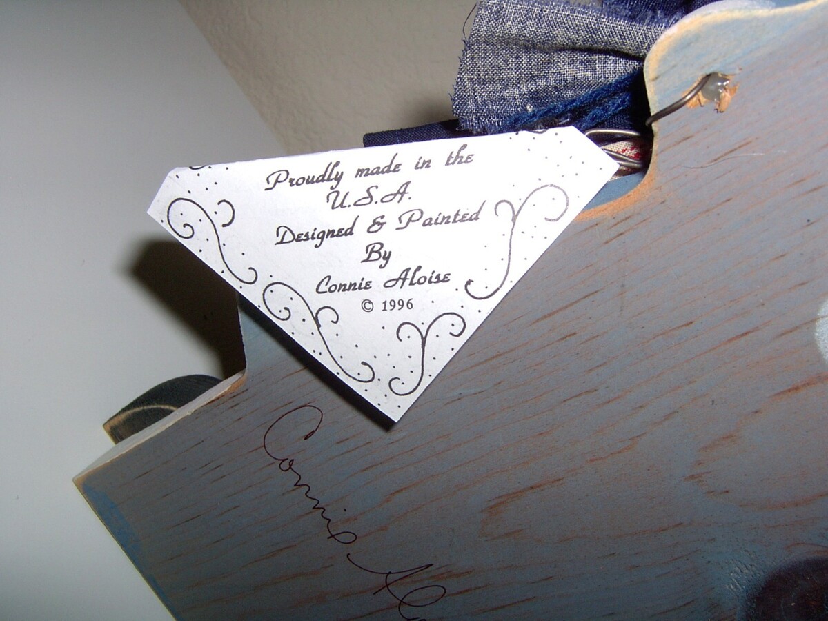 Patriotic Wooden Girl Handcrafted Primitive 4th of July Signed Connie Aloise Tag