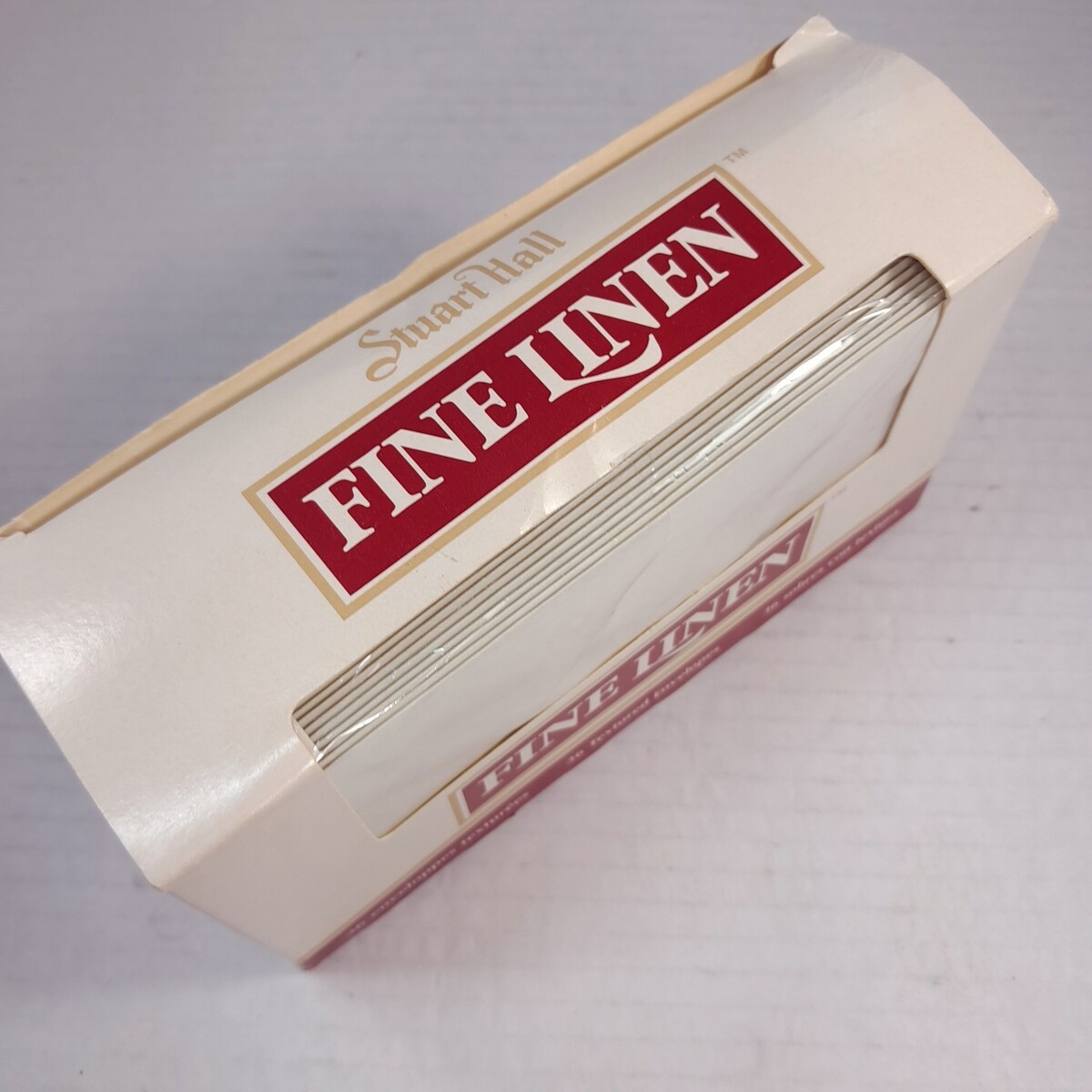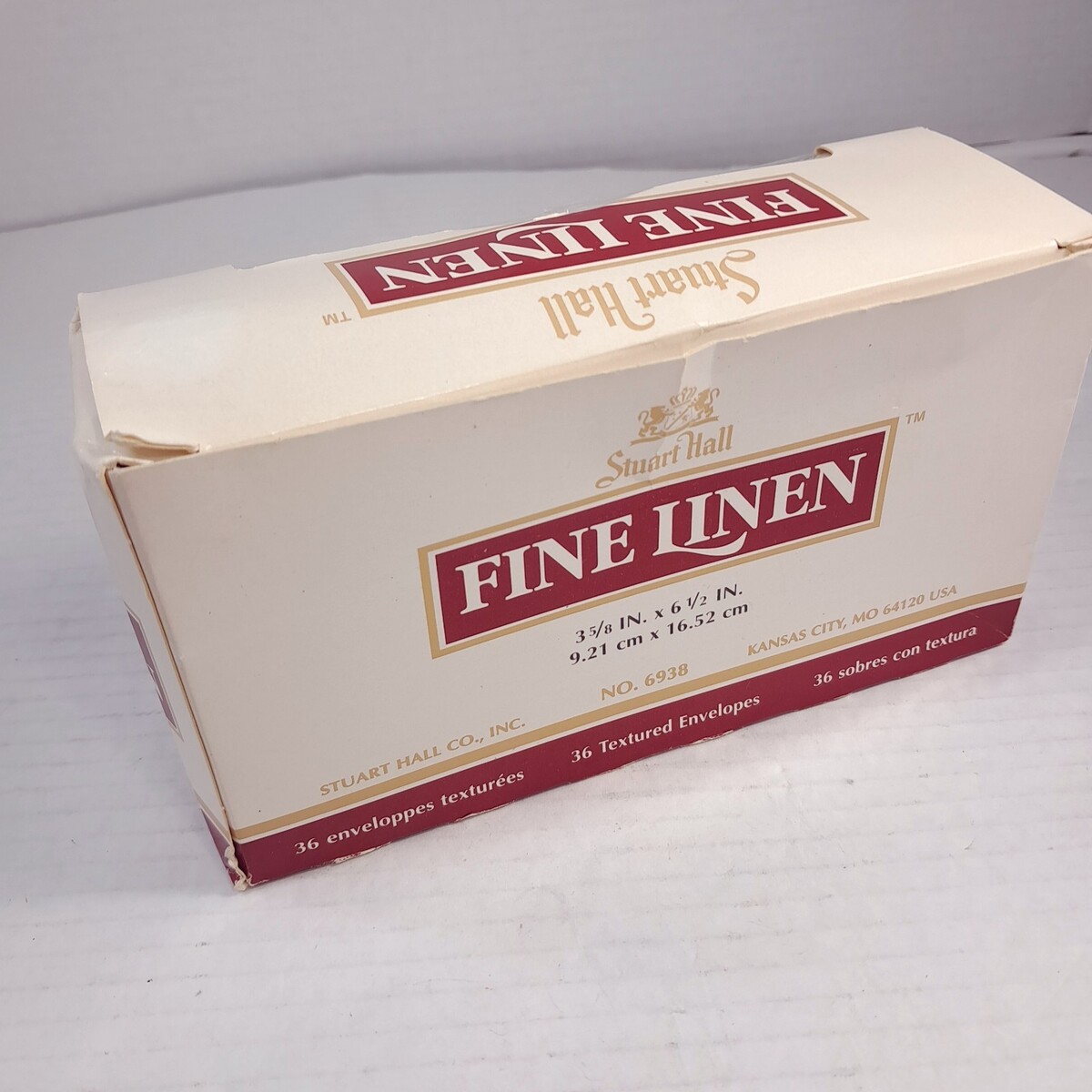 Box has 35(NOT 36) inside. Off white/cream color. Textured linen envelopes. Box condition as shown.