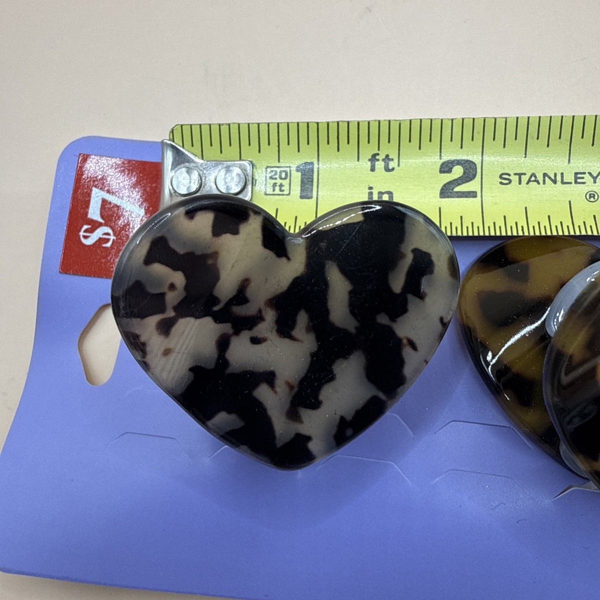 Heart Hair Clips Set of 2 Tortoise Style Plastic Barrettes Brown Black