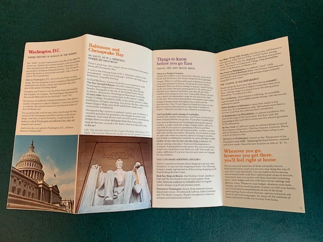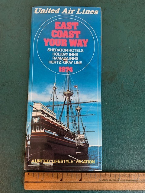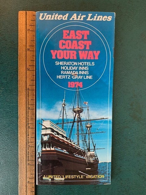 Vintage 1974 United Air Lines Brochure - East Coast Your Way -Mayflower II Cover Very good condition. Please refer to images.