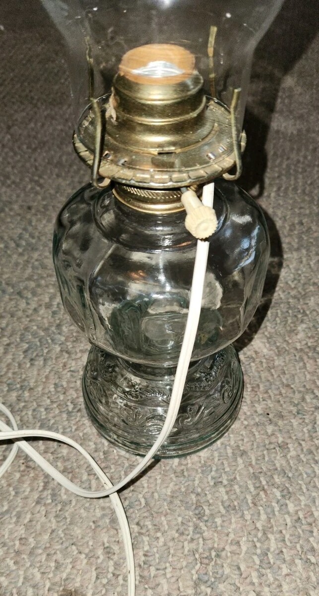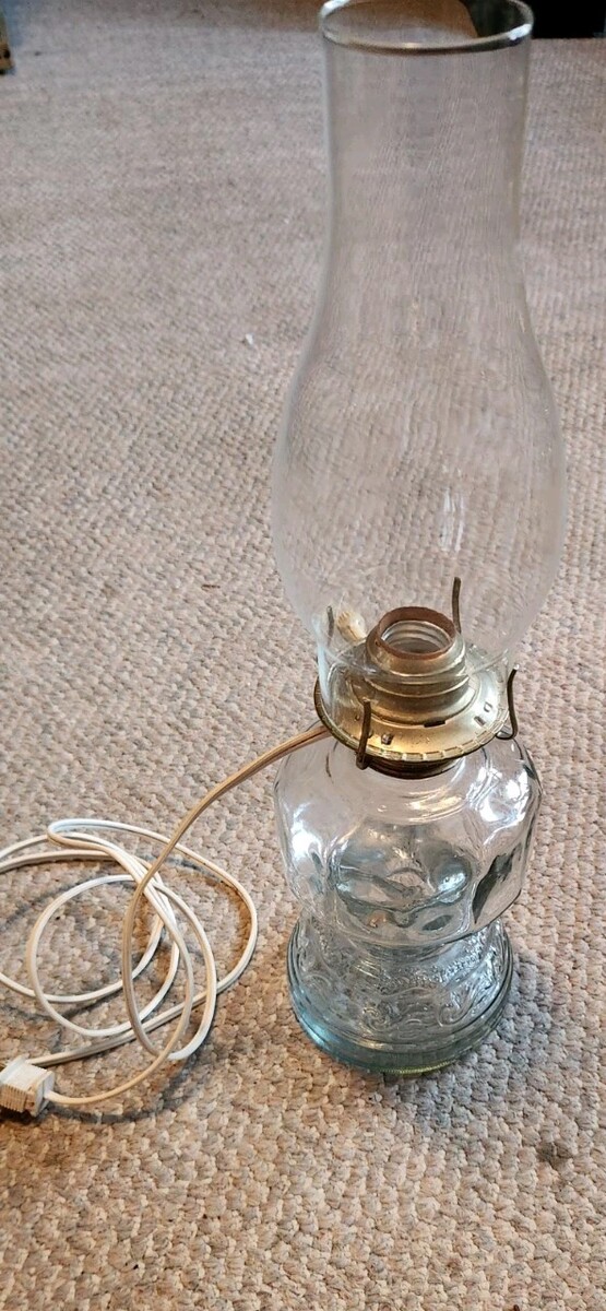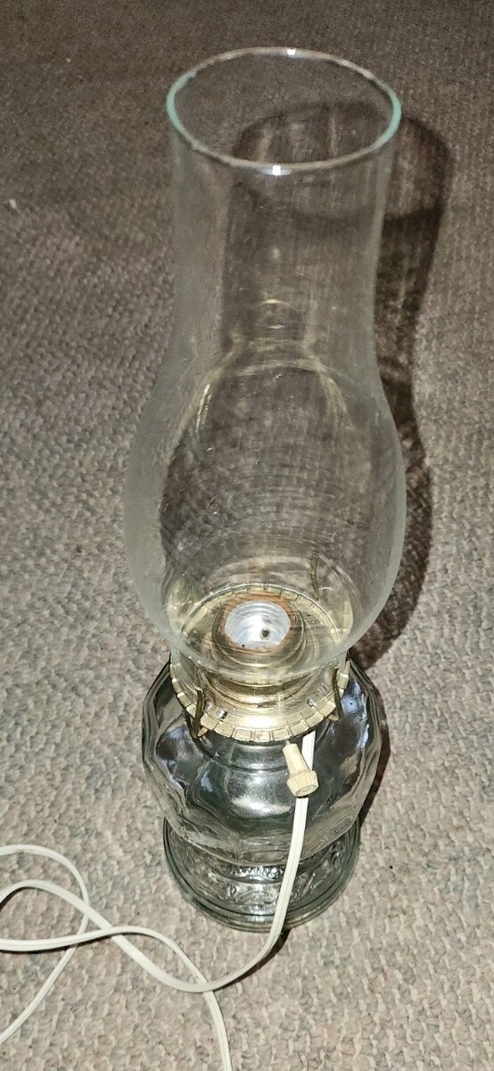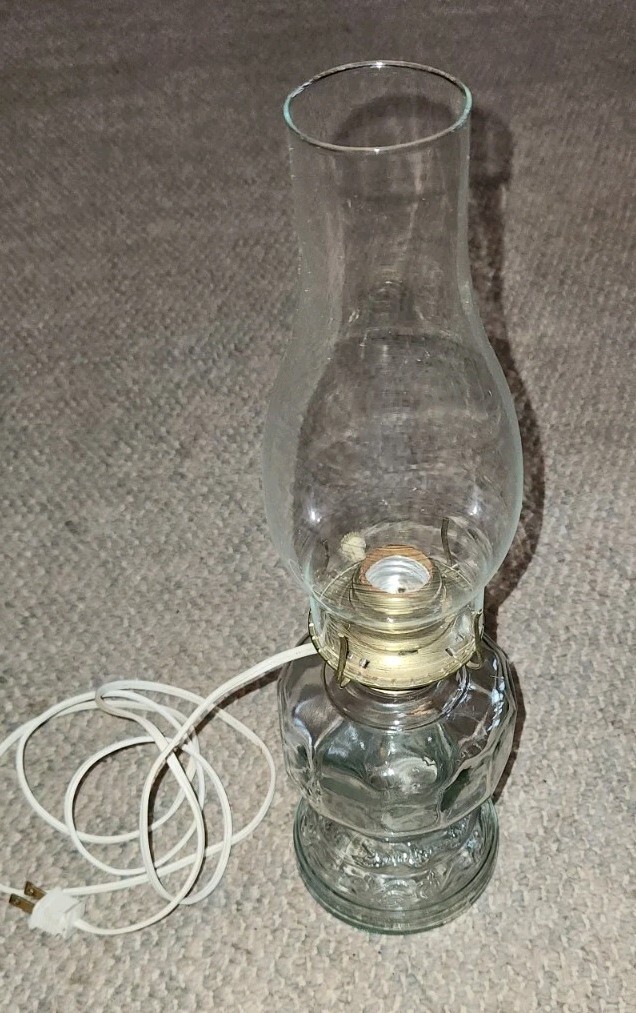 Vintage Clear Glass Electric Oil Hurricane Lamp Chimney Lighting Old World Style