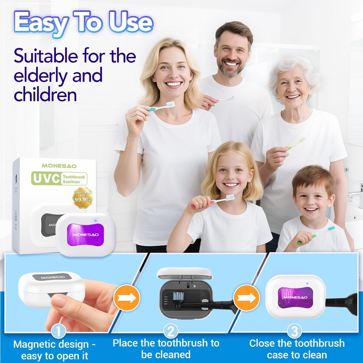Safe Toothbrush Case: With 99.9% effectiveness, our powerful cleaning light ensures a thorough 360 deep cleaning of your toothbrush, providing a fresh start every day.