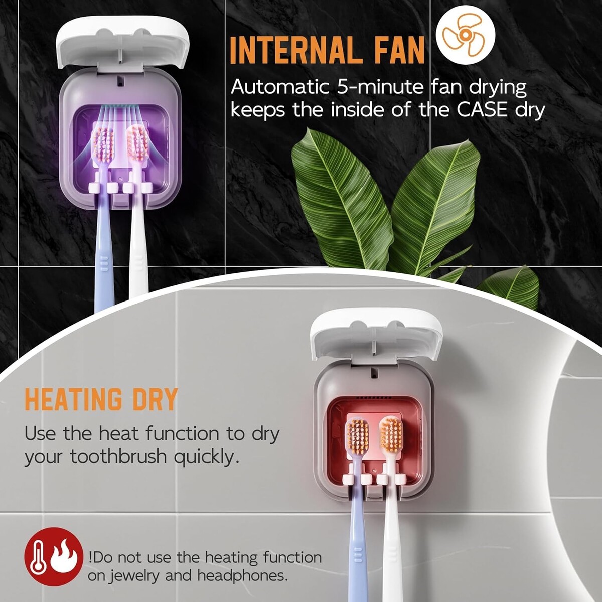Combined with a 5-minute fan function, it guarantees your toothbrush is completely dry and free of dust particles.