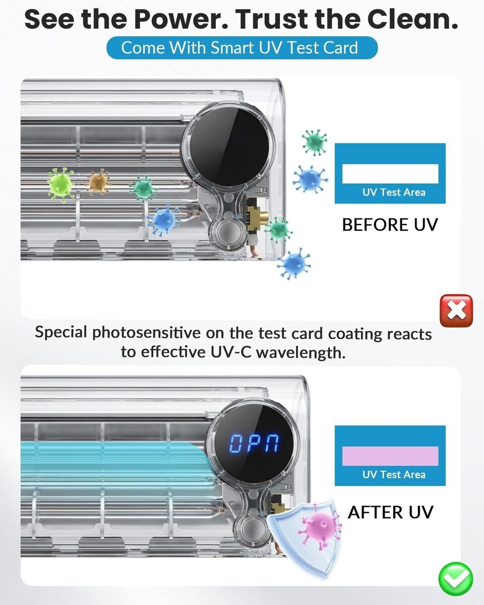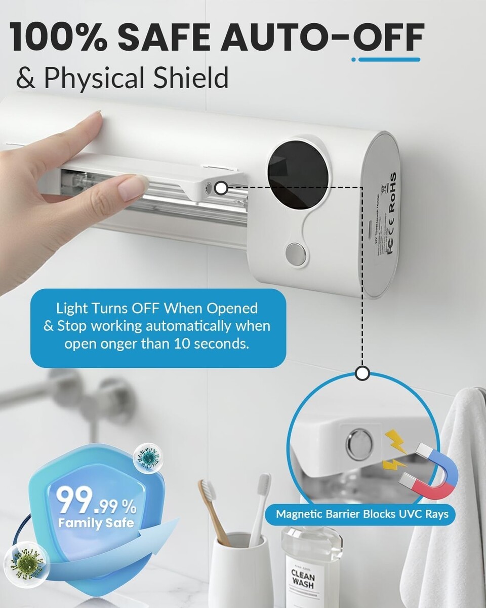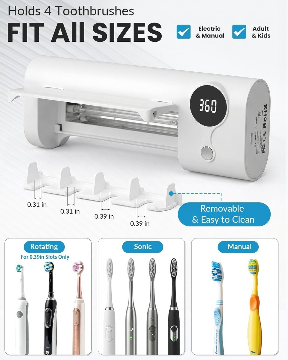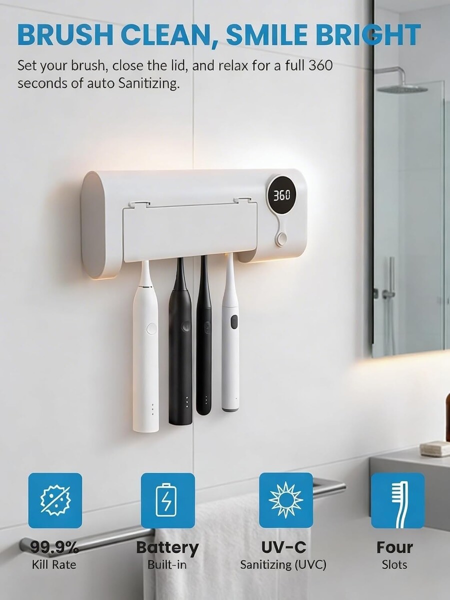 Features a 360-second countdown timer, automatically concludes sanitization, ensuring a thorough cleaning for all toothbrushes.