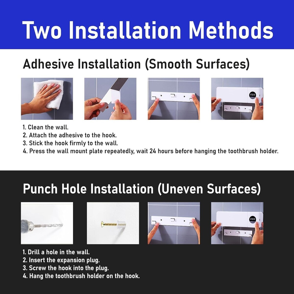 Elevate your dental hygiene with the UV Toothbrush Cleaner Holder, designed to keep your toothbrushes impeccably clean and fresh. Utilizing UV-C light technology, this holder provides a robust cleaning process that supports optimal oral care for every member of your family. With its stylish wall-mounted design, durable construction, and user-friendly features, this cleaner holder harmonizes sophistication with functionality in your bathroom routine.