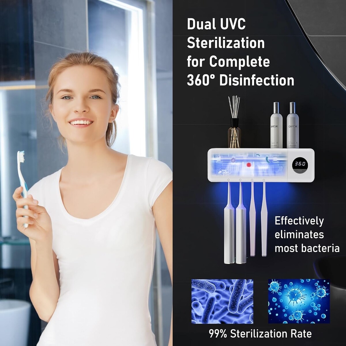 UV Toothbrush Cleaner Holder ? Rechargeable 4-Slot Organizer for Dental Hygiene