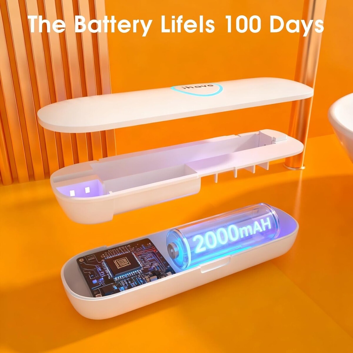 Portable UV Toothbrush Sanitizer Case for Travel - 100-Day Battery Standby