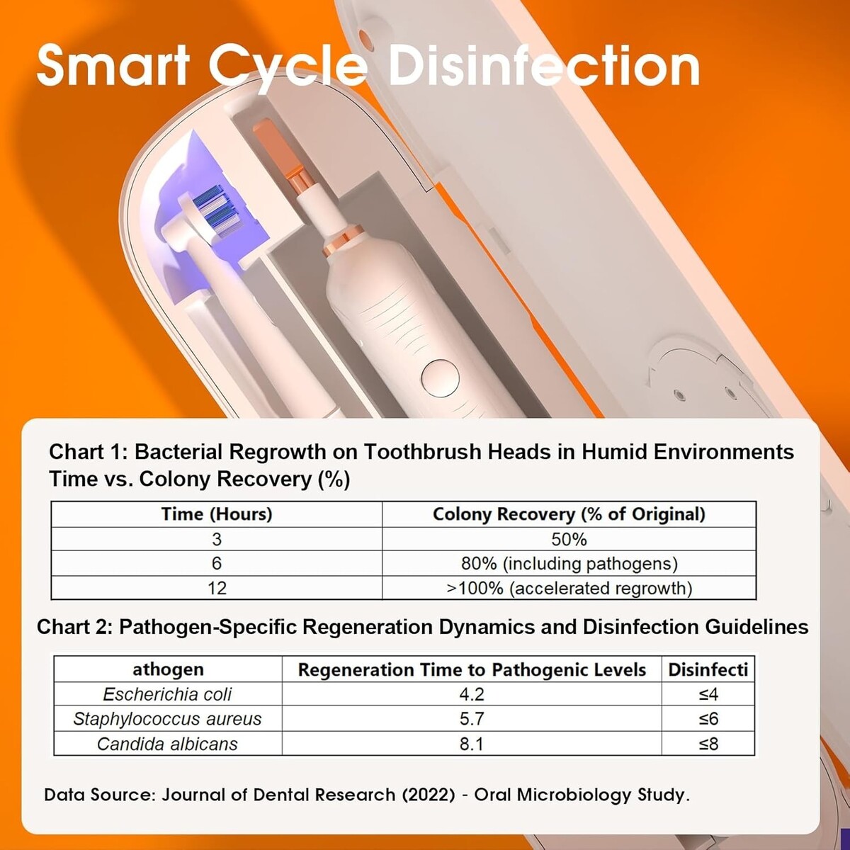 Gone are the days when toothbrush sanitizers only focus on post-brushing disinfection. Our innovative design addresses high-risk periods by incorporating smart 4-hour auto-cycle disinfection, preventing bacterial regrowth in the damp confines of the case. This hands-free, set-and-forget system ensures that your brush remains impeccably clean, ready to deliver an invigorating start to your day.