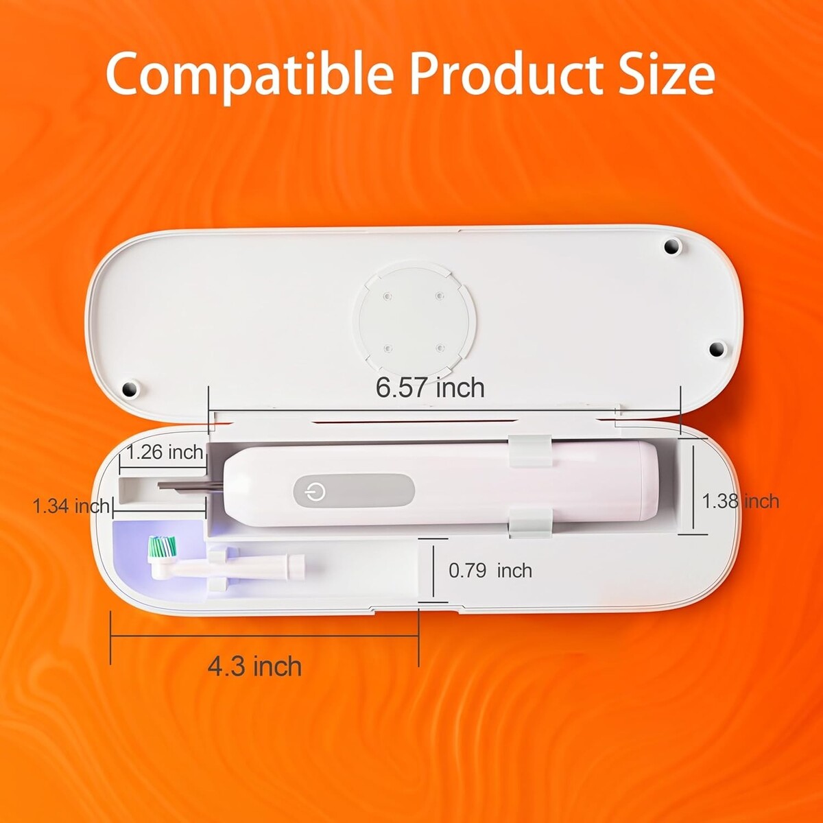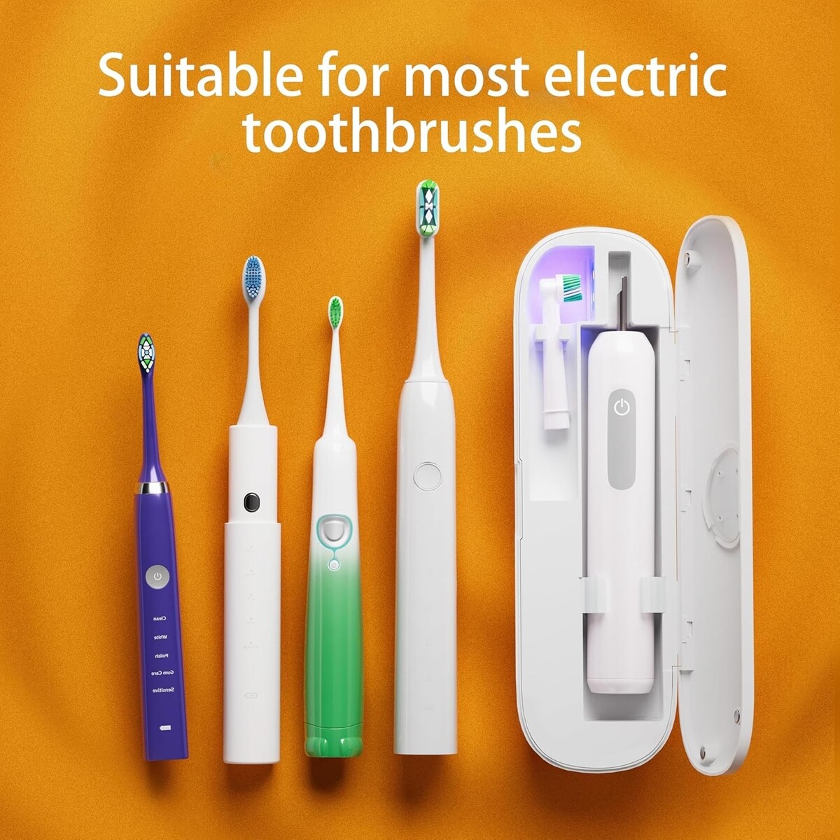 Finally, a solution to the missing travel case for your electric toothbrush. This portable UV sanitizer case is expertly crafted to accommodate most major electric toothbrush brands, featuring a slightly larger interior and a soft silicone clip to securely hold popular brush heads. Embrace cleanliness and compatibility with this essential travel companion designed for discerning electric toothbrush users.