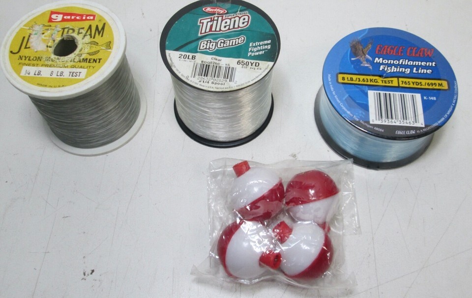 Vintage Lot of 3 New Monofilament Fishing Line Spools & 4 Bobbers