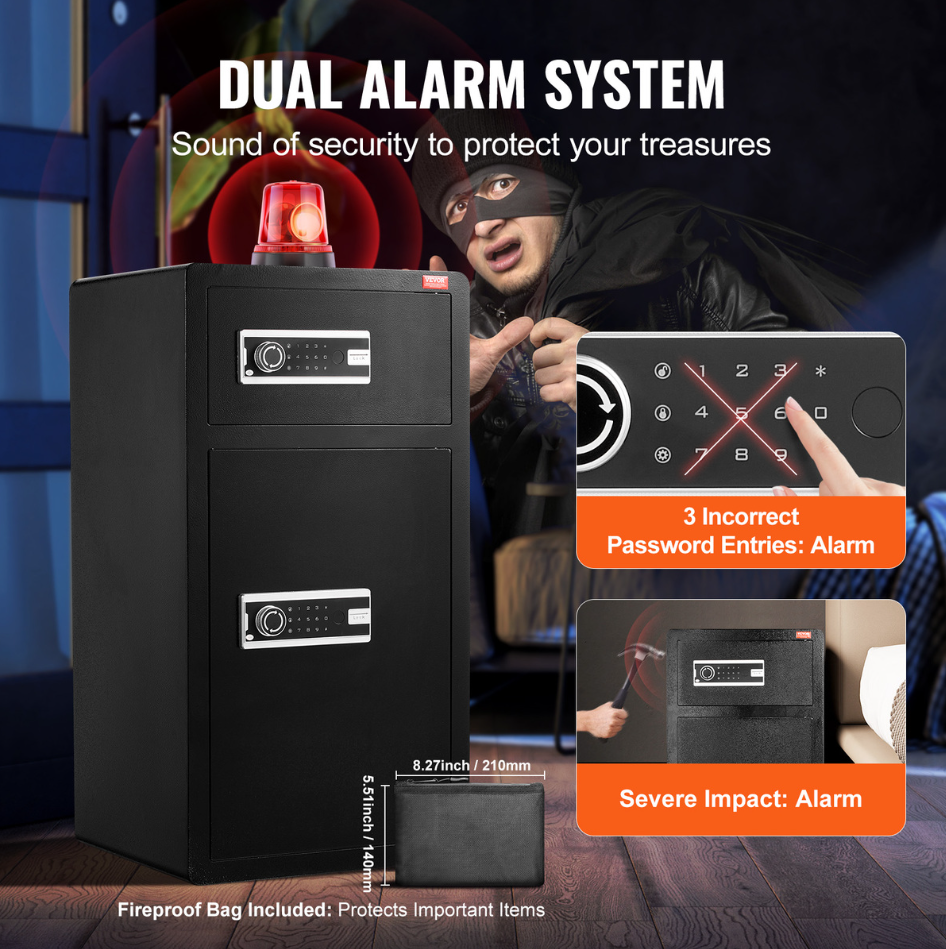 VEVOR Double Doors 7.2 cu.ft Safe Box with Key Lock & Password & Fireproof Bag