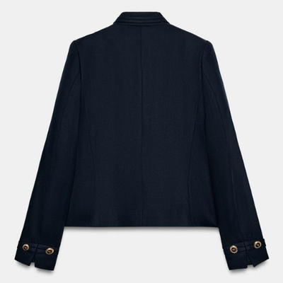 Zara Navy Blue Lyocell Golden Button Tailored Blazer Women BNWT 2730/564