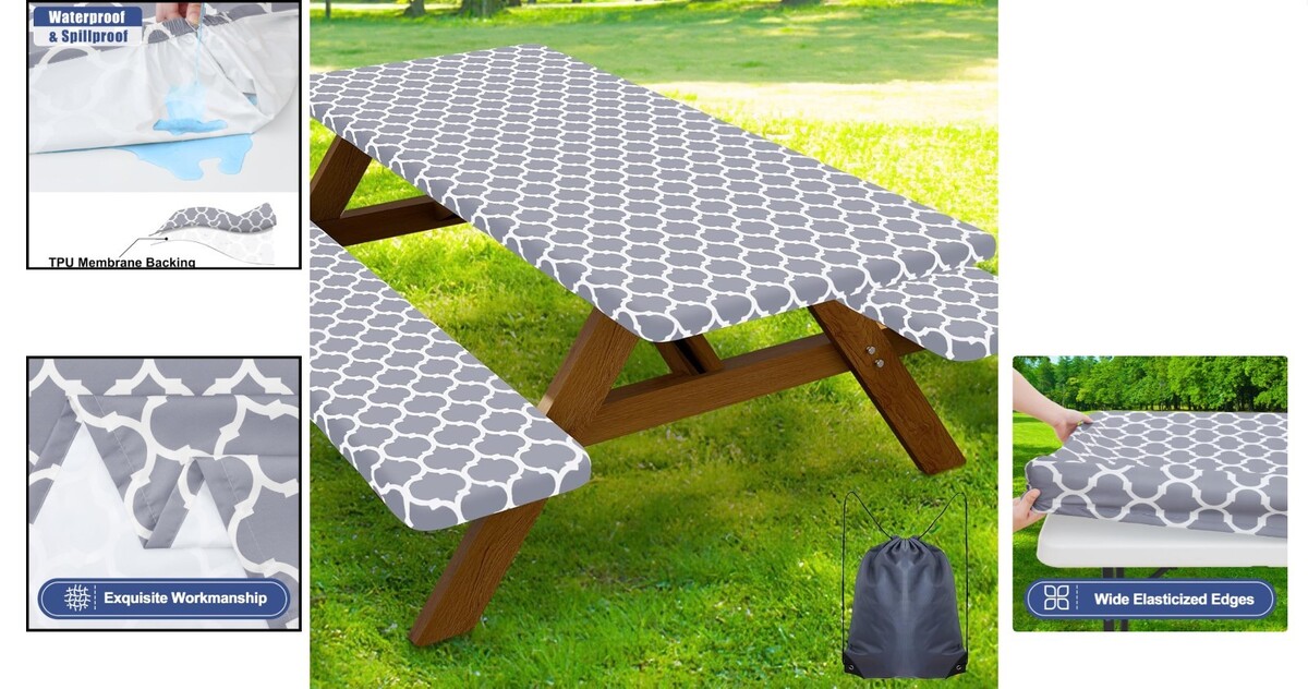 Durable Waterproof Tablecloth and Bench Covers Set - Ideal for Camping 30x72