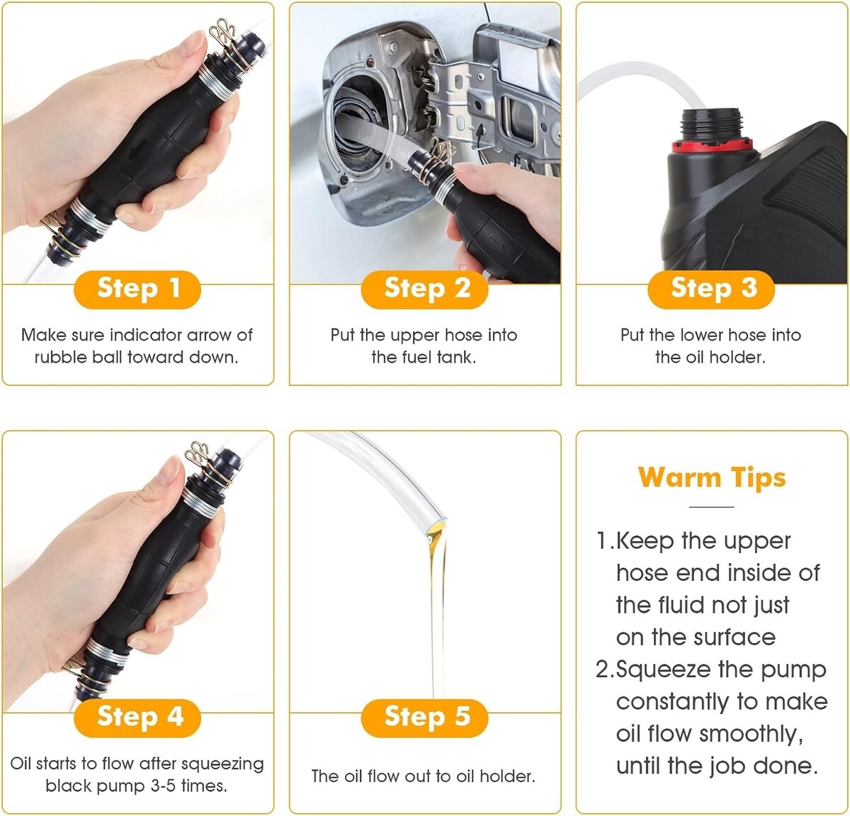 Multi-Use Capability: Designed for gasoline, oil, diesel, water, and common liquids, making it ideal for emergency gas transfers and even fish tank water transfers. Note: Not for drinking water or edible oil.