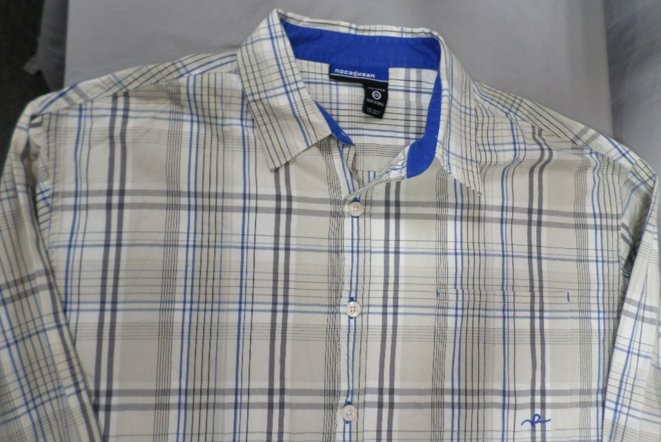 DESIGNER ROCAWEAR LONG SLEEVE 100% COTTON BUTTON TAN PLAID SHIRT SIZE 2X-LARGE