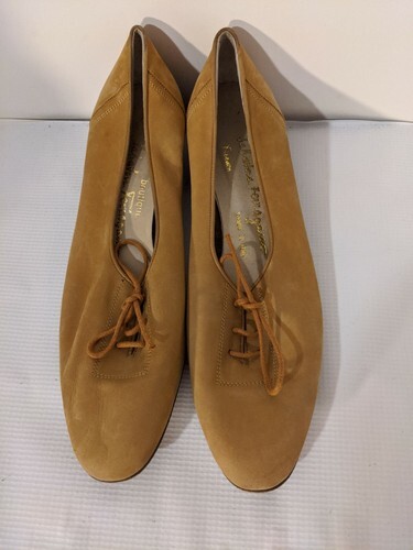 Up for sale is a used vintage pair of Salvatore Ferragamo Oxfords Boutique Brown Lace Up Heels Shoes made of Leather Suede in size 8 AA