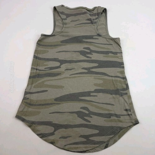 Alter'd State Womens Top xSmall Green Camo V-Neck Pocket Tank Curved Hem