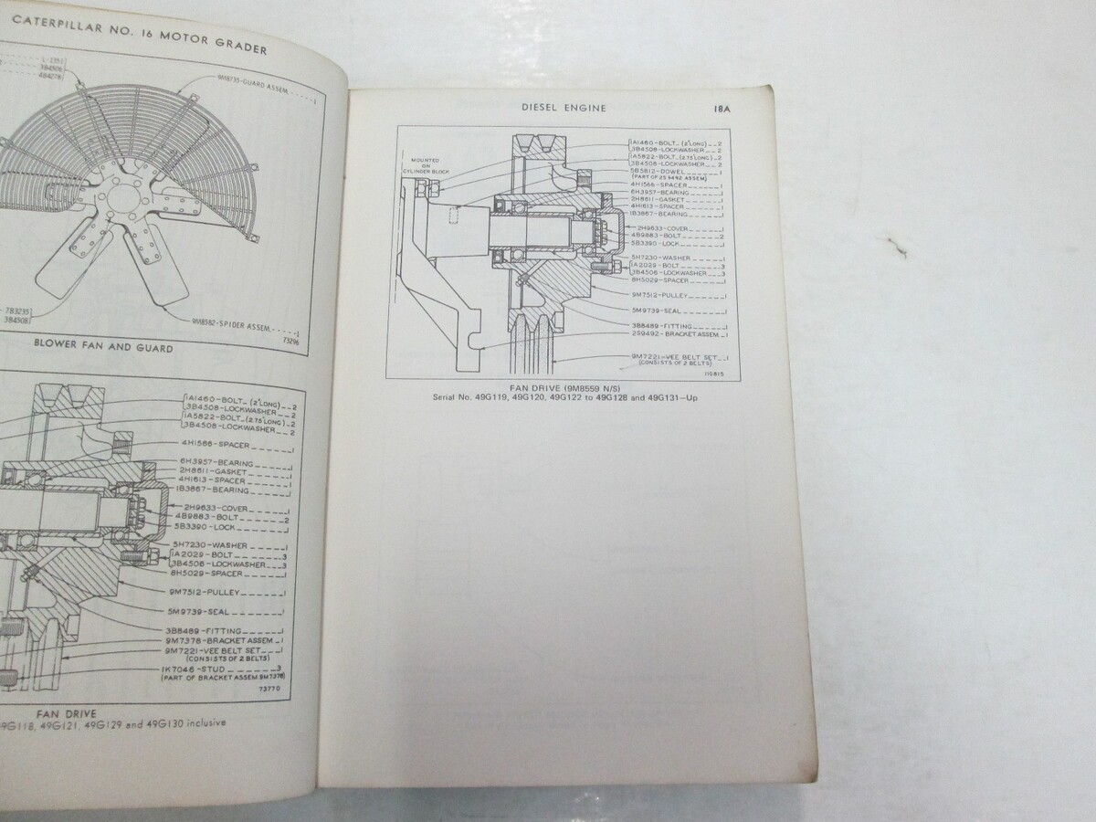 Caterpillar N 16 Motore Selezionatore Parti Libro 49G305 A 49G682 Inclusa