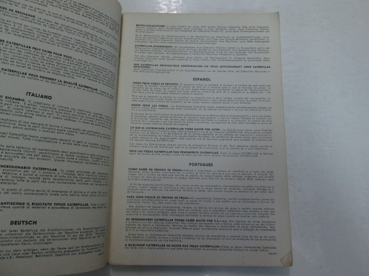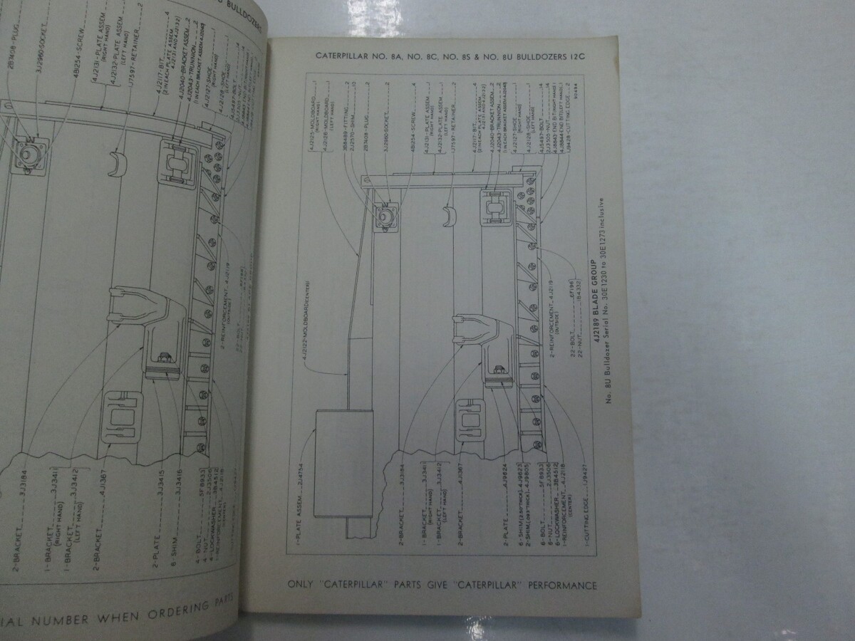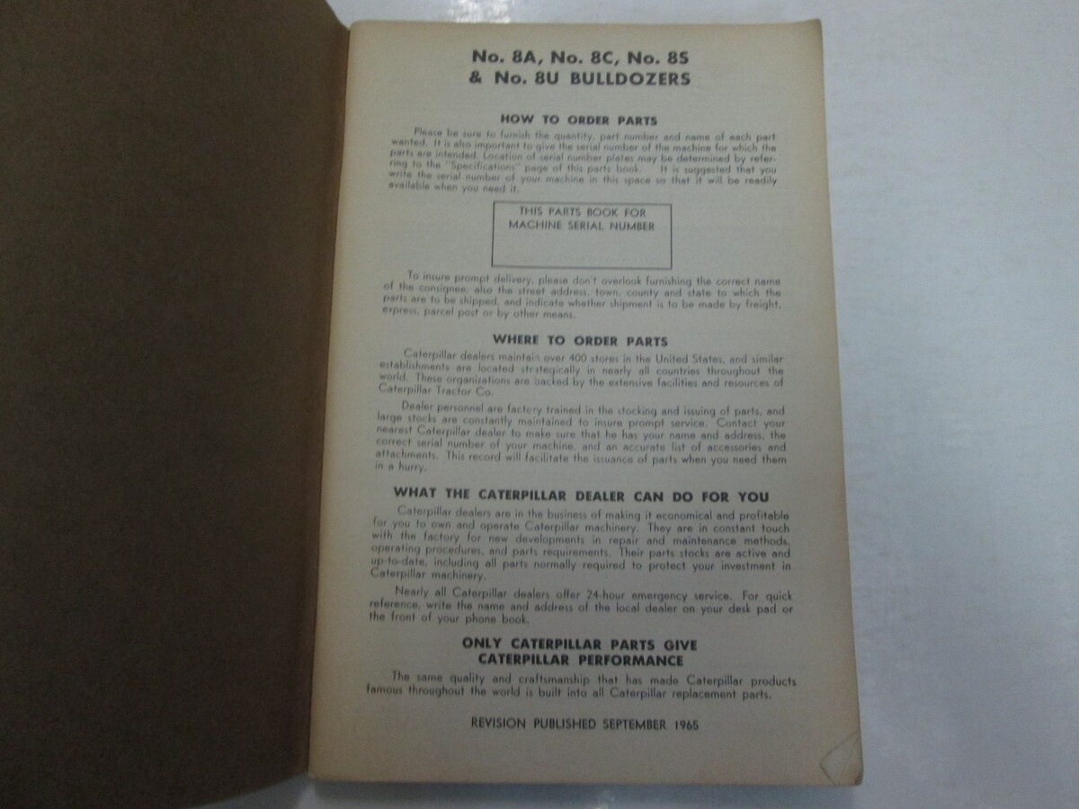 Caterpillar 8A 8C 8S 8U Bulldozer Teile Buch Manuell 1964 Beschadigt Schreib OEM